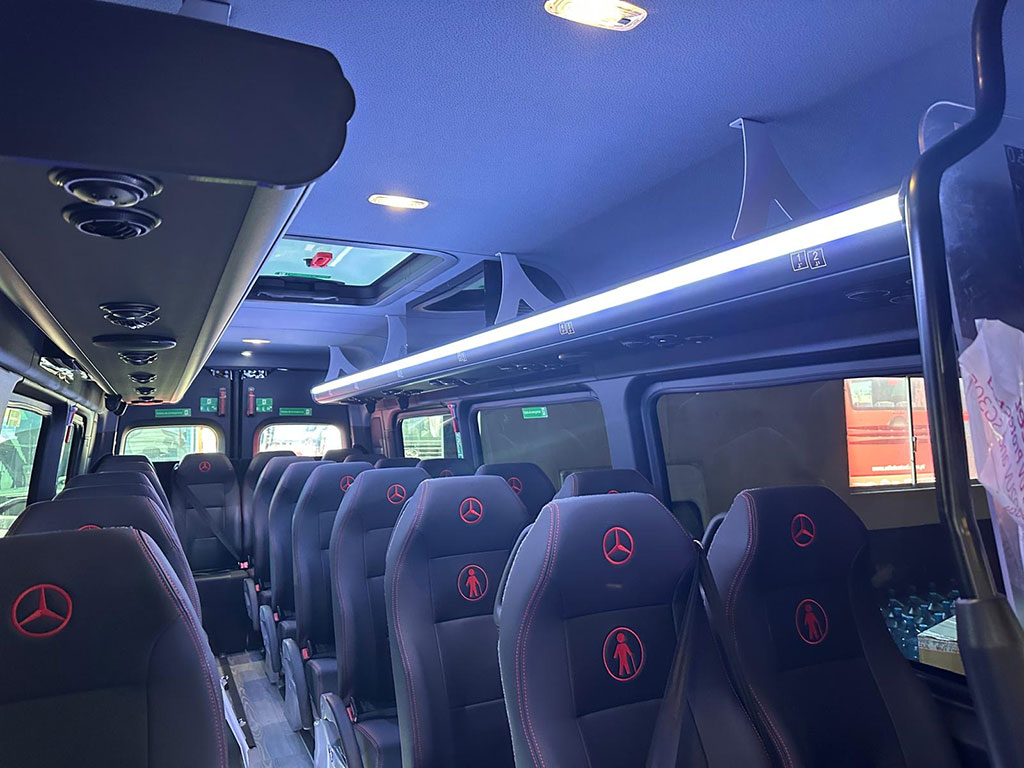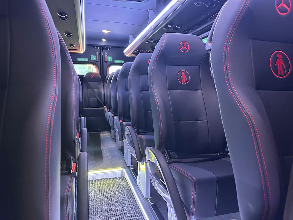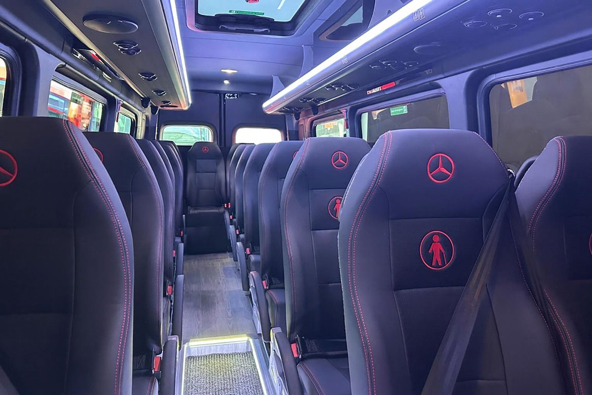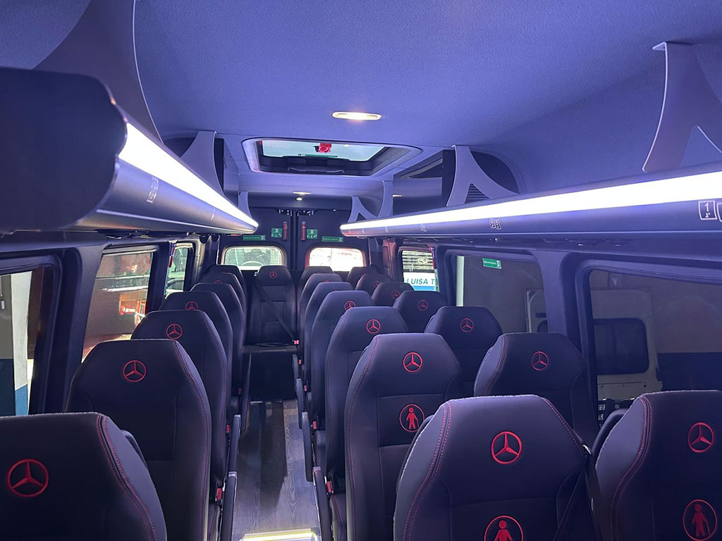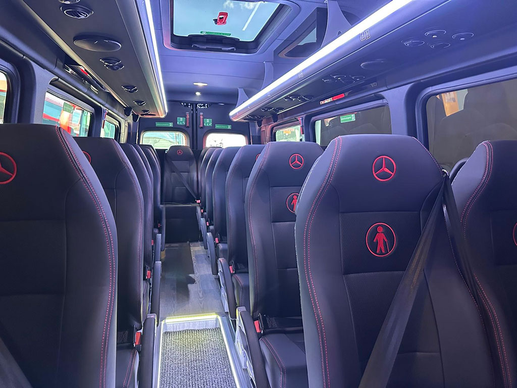 A Mercedes-Benz Sprinter de 16 lugares combina perfeitamente espaço, conforto e sofisticação, sendo a escolha ideal para viagens de grupo, eventos corporativos, transferes premium ou private tours. Com um design moderno e um interior cuidadosamente desenvolvido para o bem-estar de todos os passageiros, oferece uma experiência de viagem premium, funcional e segura.